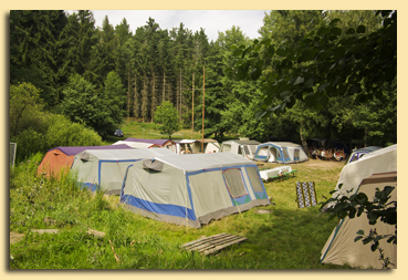 Zwei Plätze mit einer Kapazität für ca. 150 bzw. 60 Personen stehen sowohl für größere Zeltlager als auch für Einzelzelte zur Verfügung. Sanitäranlagen, Strom- und Wasseranschluss sowie eine Feuerstelle sind jeweils vorhanden; eine große Spielwiese zur gemeinsamen Nutzung trennt die beiden Plätze voneinander ab.